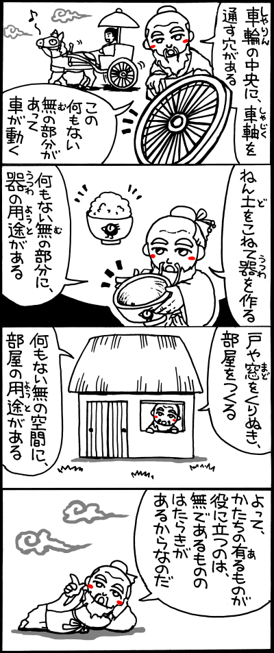 【無用の用(むようのよう)】(『老子』) 一見、役に立っていないものが、大きな役に立っていること。