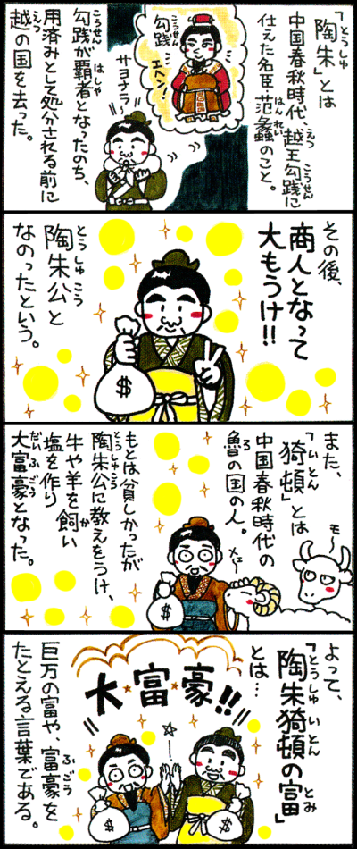 故事成語を四コマ漫画で描いた作品を、220本以上掲載しています。