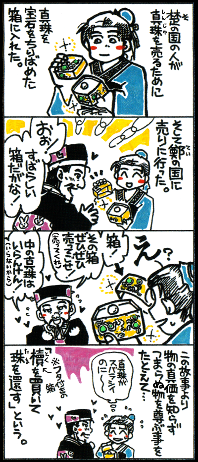 櫝を買いて珠を還す(とくをかいてたまをかえす)】(『韓非子』)