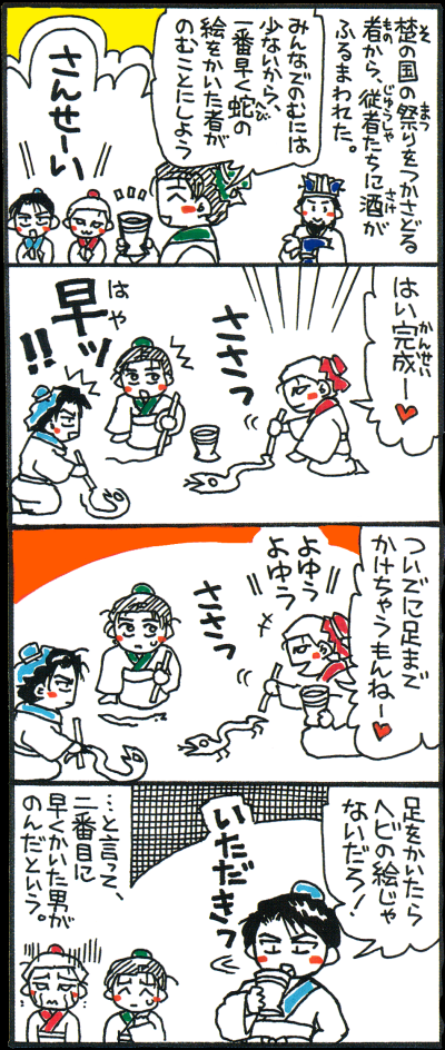 故事成語を四コマ漫画で描いた作品を、220本以上掲載しています。