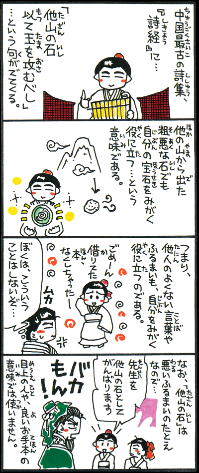 【他山の石、以て玉を攻むべし(たざんのいし、もってたまをおさむべし)】(『詩経』)