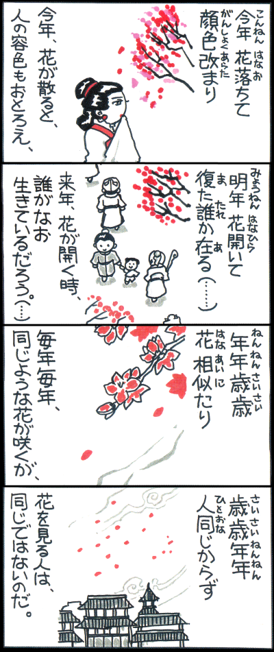 年年歳歳 花相似たり、歳歳年年 人同じからず