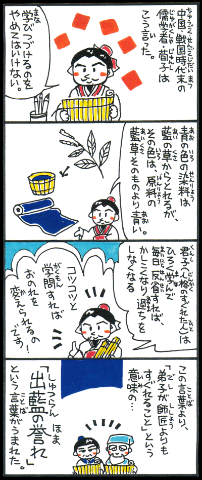 (『荀子』の言葉は「青は藍より出でて藍より青し(あおはあいよりいでて あいよりあおし)」)