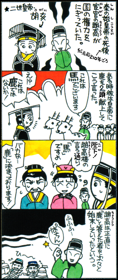【鹿を指して馬となす(しかをさしてうまとなす)】(『史記』)