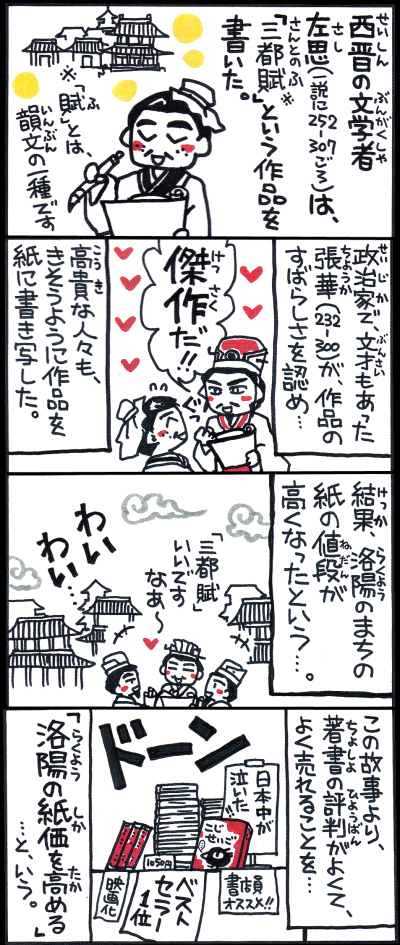 【洛陽の紙価を高める(らくようのしかをたかめる)】(『晋書』)