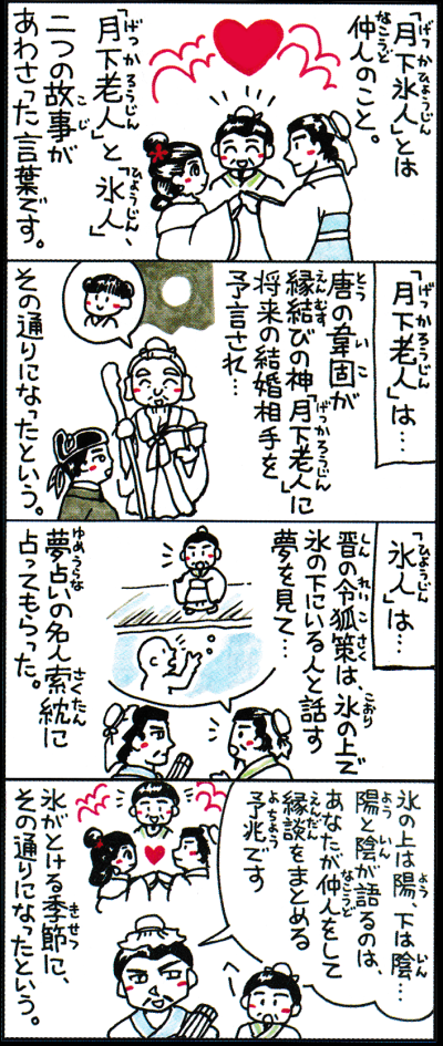 結婚の仲立ちをする人、仲人(なこうど)のこと。