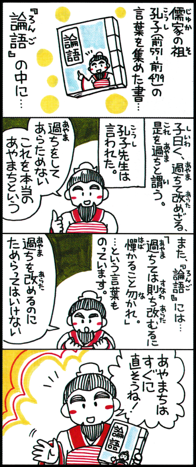 【過ちて改めざる是を過ちと謂う(あやまちてあらためざる これをあやまちという)】(『論語』)