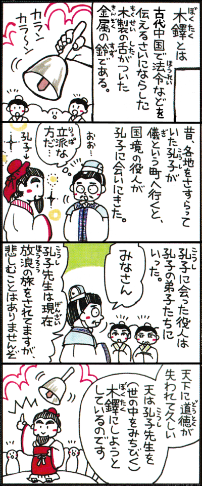 古代中国で、法令などを人々に伝えるさいに鳴らした、木製の舌がついた金属の鈴。