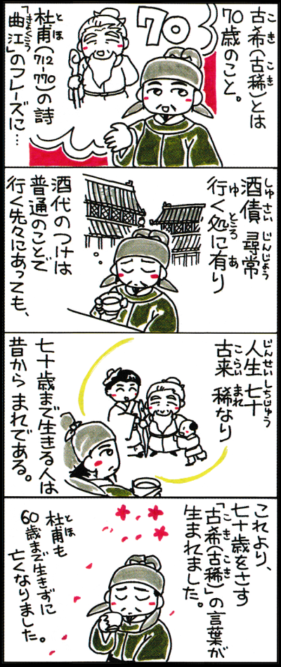 【古希(古稀)(こき)】(杜甫(盛唐)の詩「曲江」より)