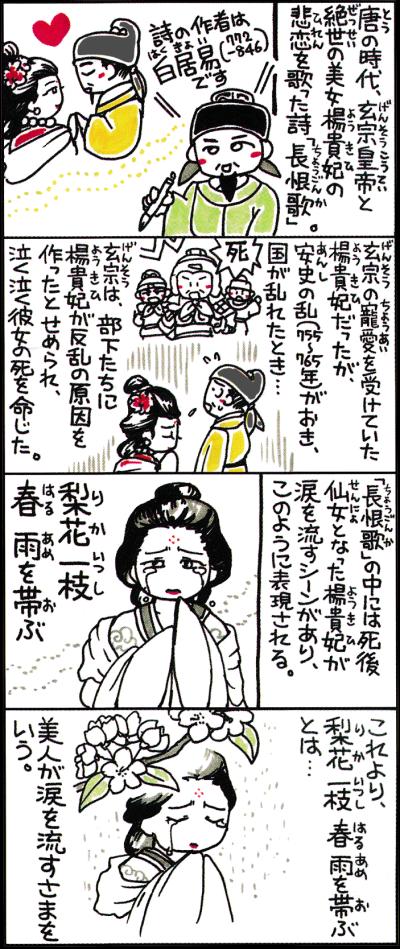 【梨花一枝 春 雨を帯ぶ(りかいっし はる あめをおぶ)】(白居易「長恨歌」)