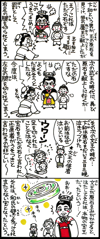 春秋時代、楚(そ)の国の卞和(べんか)が見つけた名高い宝石(「
