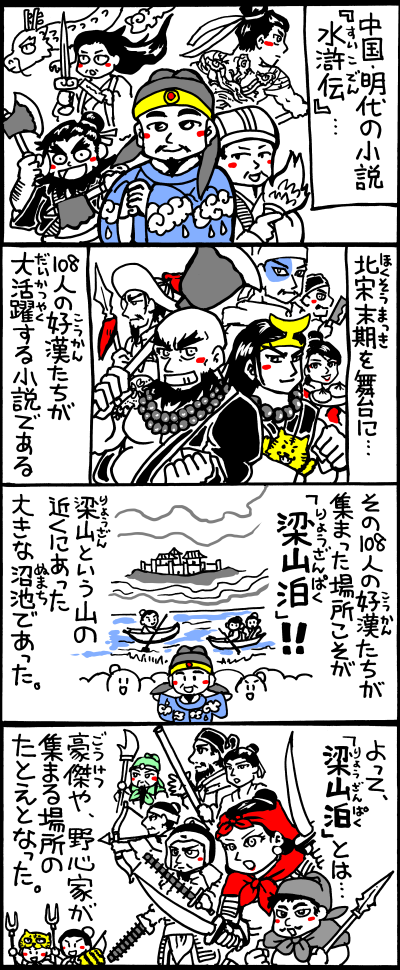 故事成語を四コマ漫画で描いた作品を、220本以上掲載しています。