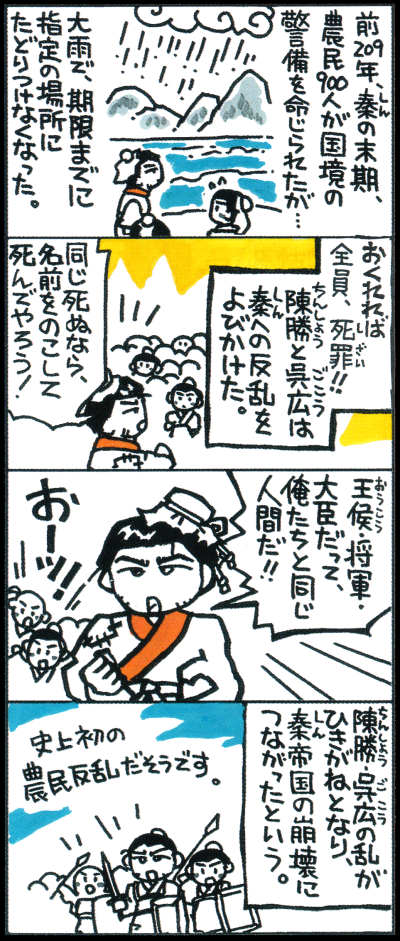【燕雀安んぞ鴻鵠の志を知らんや(えんじゃく いずくんぞ こうこくのこころざしをしらんや)】(『史記』) 小人物には、大人物の大きい志は分からない。